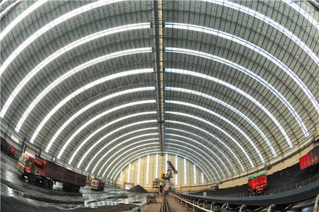 堆场料场封闭式主体结构为新型的钢吉林网架结构,维修结构为吉林钢结构吉林不锈钢板和纤维增强塑料灯具,其外形以吉林网架式和平板为主,连接柱吉林施工自由,设置喷雾自动喷水系统,从而可以实现棚内所有物料的覆盖,减少物料在运输过程中的损耗,起到防尘的作用,减少工厂关闭后的二氧化硫排放量,50mg/m3颗粒排放量小于10mg/m3,非常适合低能耗。低闭库自动感应反应对库存轮胎进行清洁,确保轮胎不受道路污染;封闭的储存区可从源头控制粉尘污染,控制无序排放。